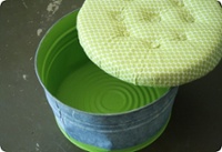 Take any old large metal bucket and transform it into an ottoman-cooler combo. Fill the bucket with ice to cool your beverages, and top it off with a pillow topper to rest your feet on. To give it extra personality, painting the inside with a can of spray paint will do the trick!
