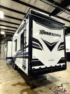 You can find this Momentum 397THS toy hauler at Good Life RV in Webster City, Iowa. We have many financing options and do accept trades. Give us a call today! 515-832-5715!