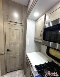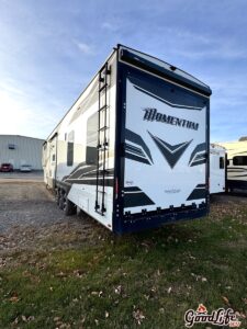 This USED 2023 Grand Design Momentum M-Class 397THS is a luxury toy hauler RV designed for adventure and comfort. Featuring a spacious 13-foot garage, it accommodates off-road vehicles while offering living amenities such as a master suite, full kitchen, and an elegant living area with reclining sofas. Highlights include a triple-slide layout, an expansive patio system, a premium entertainment center, and a large residential fridge. With advanced insulation and weatherproofing, it’s built for year-round use, combining rugged utility with high-end finishes for a versatile and upscale camping experience.
