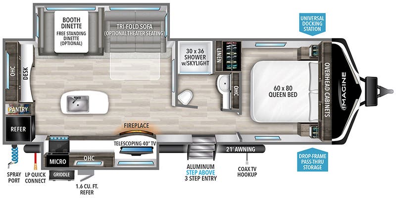 With innovative floor plans starting at 5000-pounds, Imagine hits the towing sweet spot for today’s medium duty trucks and SUVs. Imagine does so without the compromise that other manufacturers feel forced to in pursuit of lighter weight.
