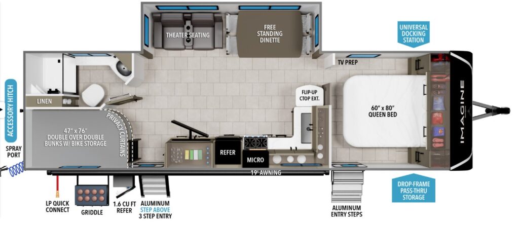 Whether you’re leaving the world behind for the weekend or sticking around for a stay-cation, with the Imagine it’s all as easy as “tow and go.” Down to every tiny detail, the Imagine offers everything your family needs for adventure — and a good night’s sleep. The Imagine 2800BH is one that will amaze and exceed the expectations of our retail customers. This and other great bunkhouse Imagine layouts are For sale at Good Life RV in Des Moines, IA 515-462-9800