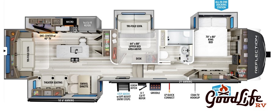 This and other great bunkhouse Reflection 5th wheels are available at Good Life RV in Webster City, IA 515-832-5715 – Give us a call today!